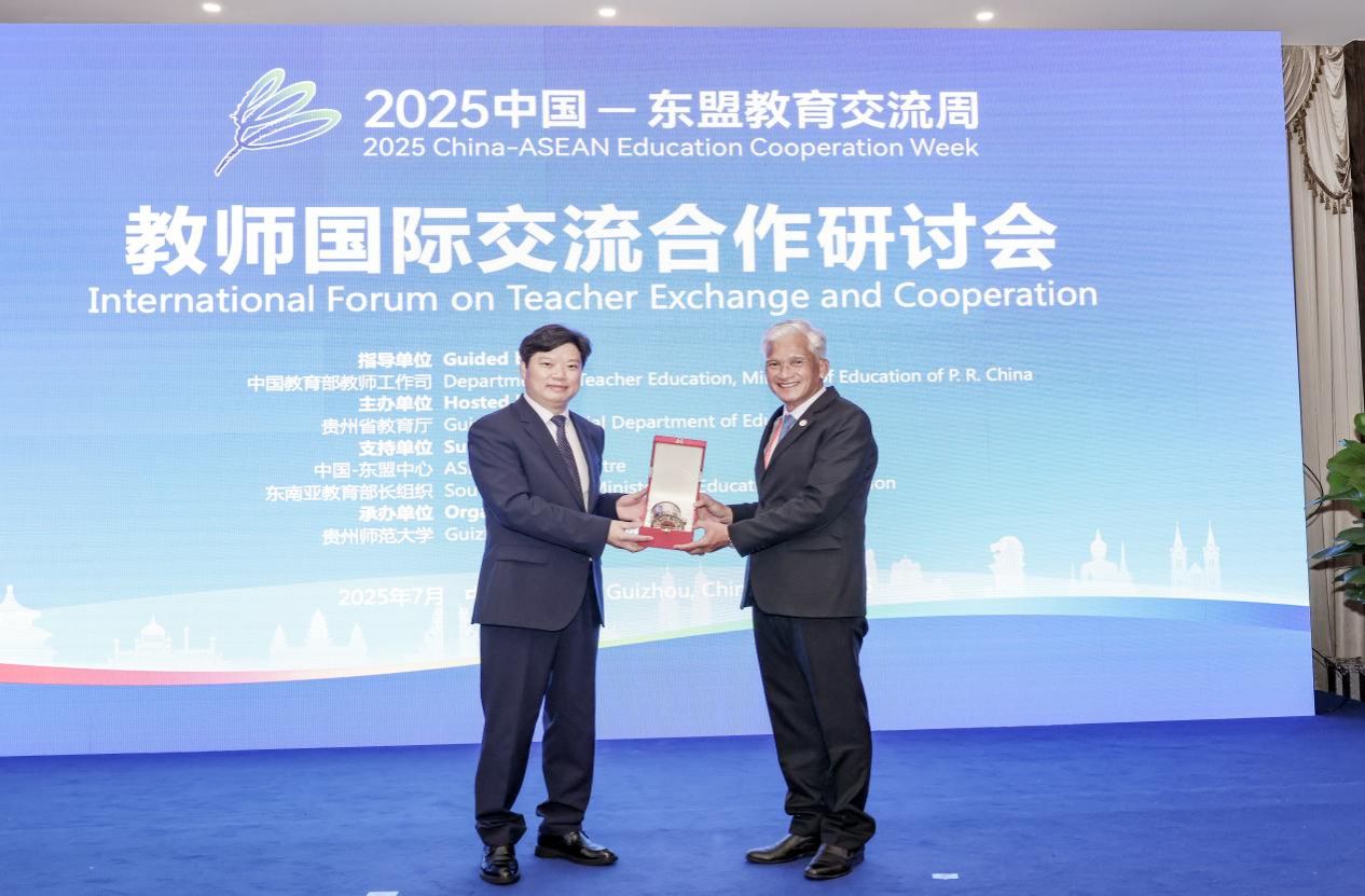 On July 26th, International Forum on Teacher Exchange and Cooperation, hosted by Guizhou Normal University(GZNU), along with the opening ceremony for the Science Teacher Training Program for ASEAN Countries, was held at the permanent venue of the China-ASEAN Education Cooperation Week. This forum was organized by the Guizhou Provincial Department of Education and supported by the ASEAN-China Centre(ACC) and the Southeast Asian Ministers of Education Organization (SEAMEO).